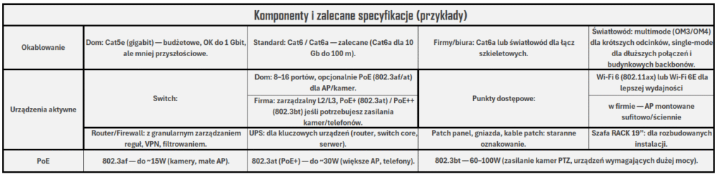 📌Analiza wymagań (liczba użytkowników, urządzeń, zastosowania: VoIP, CCTV, serwery, IoT, backup).